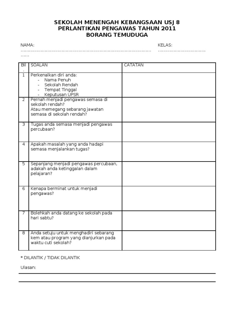 Contoh Soalan Temuduga Sekolah Menengah Agama